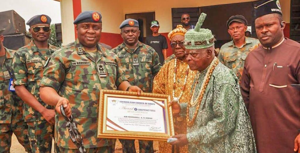 In recognition of the Service’s sustained developmental interventions, the Edemaya community conferred the traditional title “UFAN EDEMAYA” — meaning Friend of the People of Edemaya — on the Chief of the Air Staff (CAS), Air Marshal Sunday Kelvin Aneke, during the ceremony held on 20 February 2026.