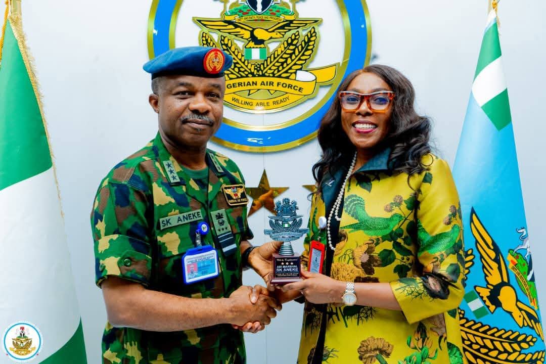 The Chief of the Air Staff (CAS), Air Marshal Sunday Kelvin Aneke, has reaffirmed the Nigerian Air Force’s commitment to leveraging advanced technology and strategic partnerships to strengthen national security during a courtesy visit by the Managing Director/Chief Executive Officer of the Nigerian Communications Satellite (NIGCOMSAT) Limited, Mrs Jane Nkechi Egerton-Idehen, to Headquarters Nigerian Air Force on Wednesday.
