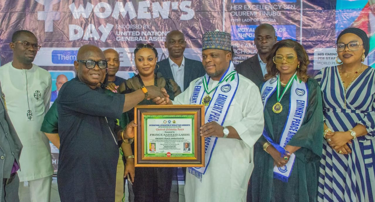 In recognition of his global peace-building efforts, NAHCO’s Group Executive Director, Commercial and Business Development, Prince Saheed Lasisi, has been awarded an International Eminent Peace Ambassador by the International Association of World Peace Advocates, United States of America.