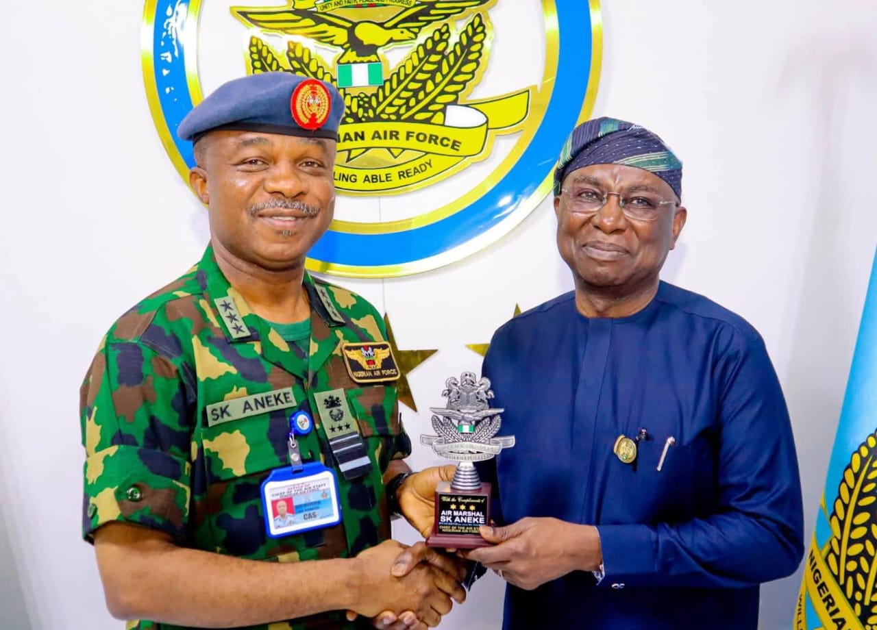 The Director-General and Chief Executive Officer of the Nigerian Maritime Administration and Safety Agency (NIMASA), Dr. Dayo Mobereola, on Friday, February 20, 2026, paid a strategic courtesy visit to the Chief of the Air Staff (CAS), Air Marshal Sunday Kelvin Aneke, at the Headquarters of the Nigerian Air Force in Abuja.