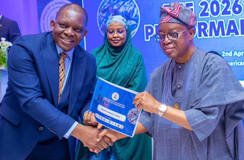 The signing of the 2026 performance bond was conducted by the Minister of Maritime and Blue Economy, His Excellency Dr. Adegboyega Oyetola.
